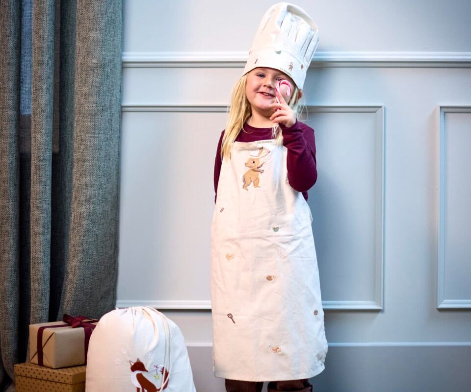 Οι λεπτές κεντητές λεπτομέρειες εμπνευσμένες από τον φούρνο προσθέτουν μια μαγική πινελιά σε αυτό το διαχρονικό σετ. Με τον αγαπημένο λαγό της FILIBABBA και τις προσεγμένες λεπτομέρειες, το σχέδιο συνδυάζει παιχνιδιάρικη διάθεση με κομψότητα.