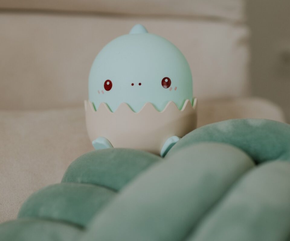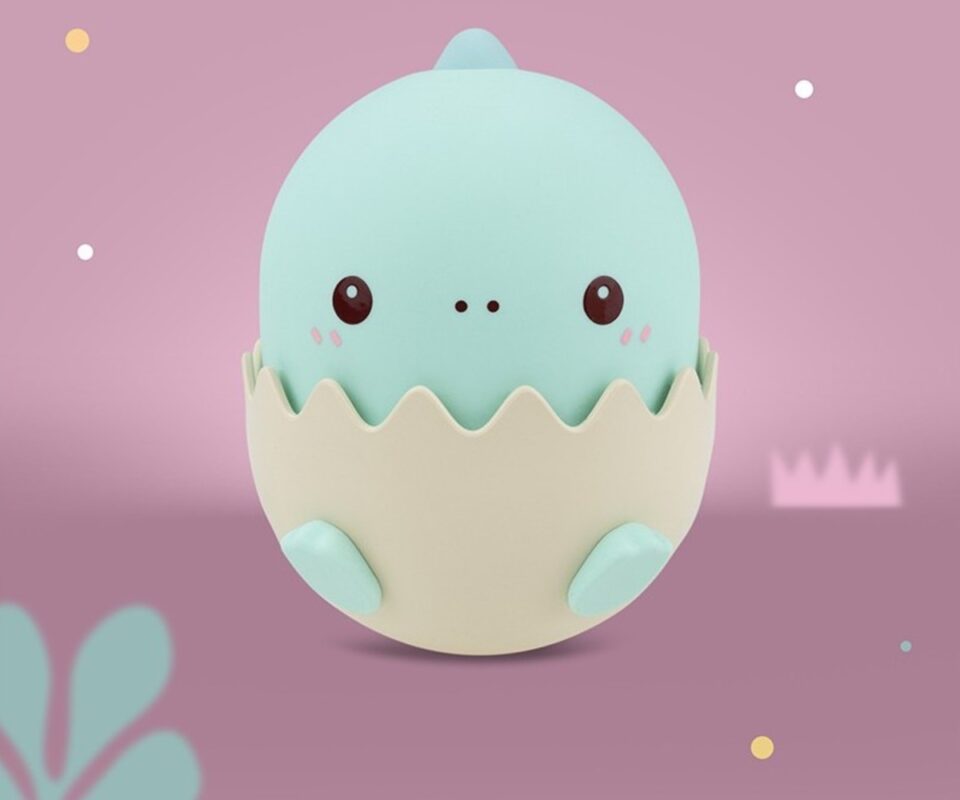 Ένας μικρός δεινόσαυρος που εκκολάπτεται από το αυγό του, ως πρώτο φωτάκι για το παιδικό δωμάτιο, δημιουργεί μια χαριτωμένη και παιχνιδιάρικη ατμόσφαιρα. Στο δωμάτιο θα απλώνεται ένα απαλό άρωμα ελαίου (όπως παιδική λοσιόν) σε συνδυασμό με το φωτάκι, που μπορεί να έχει οποιοδήποτε χρώμα ταιριάζει στη διακόσμηση του δωματίου.