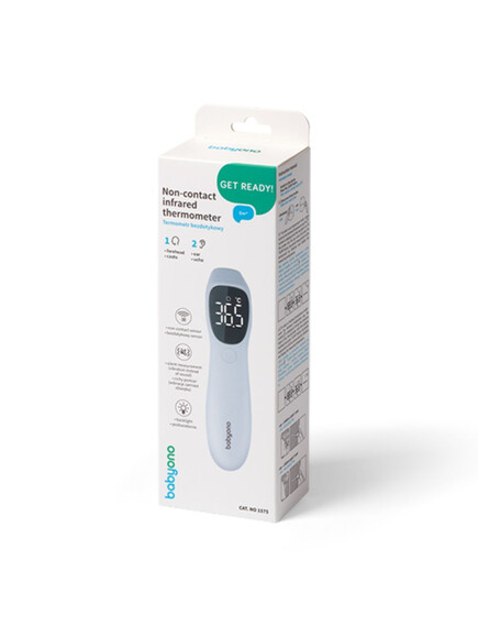 Η Babyono φέρνει την επανάσταση στα ηλεκτρονικά θερμόμετρα χωρίς άγγιγμα! Μόνο με το πάτημα ενός κουμπιού και μόλις σε 1 δευτερόλεπτο μπορείτε να μετρήσετε με ακρίβεια τη θερμοκρασία του μωρού σας! Ακόμη και όταν το μωρό σας κοιμάται το θερμόμετρο διαθέτει μια μικρή δόνηση κατά την ένδειξη για να μην το ξυπνήσετε! Είναι το πιο βολικό θερμόμετρο στη χρήση σε σχέση με τα παραδοσιακά θερμόμετρα. Με υπέροχο σχεδιασμό και μια οθόνη LED που διευκολύνει την ανάγνωση της θερμοκρασίας ακόμη και τη νύχτα. Μια ιατρική συσκευή που έχει κλινικά δοκιμαστεί στην ΕΕ.