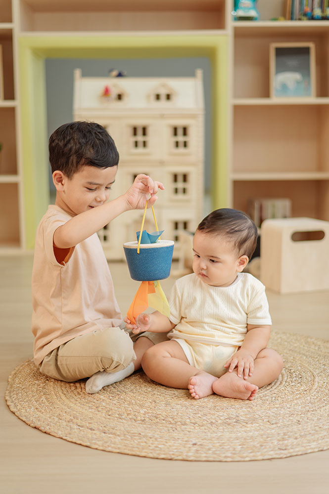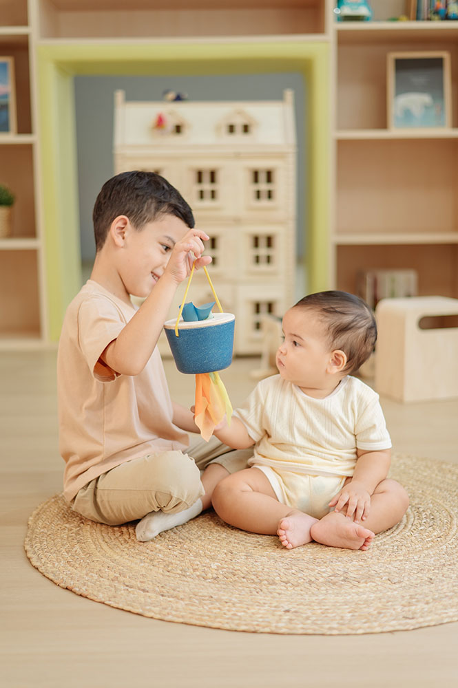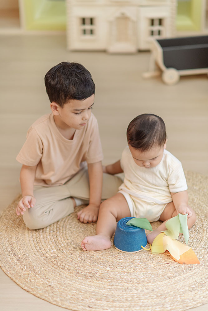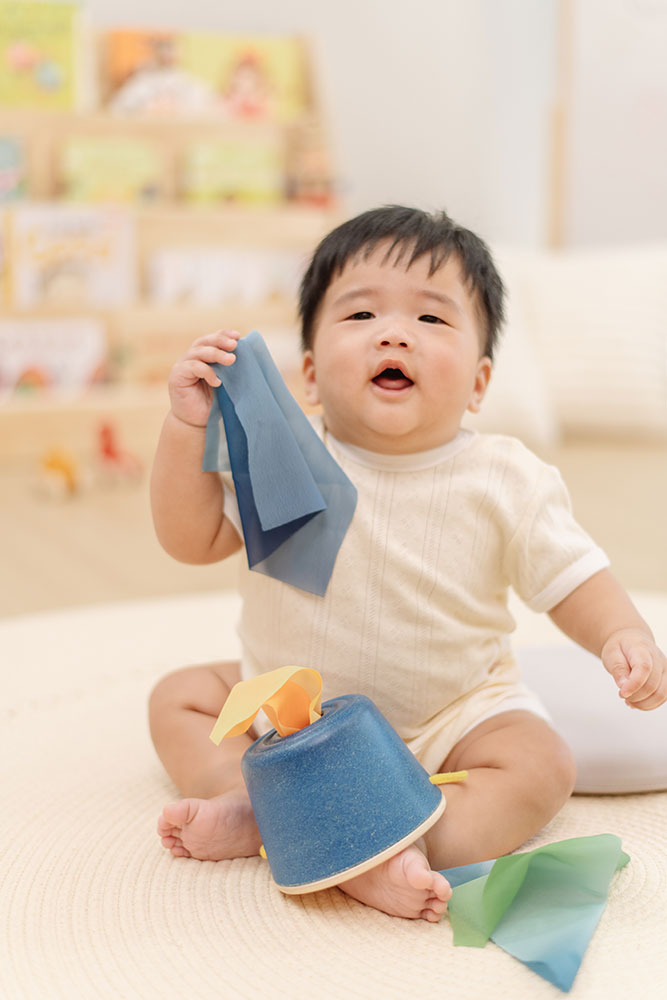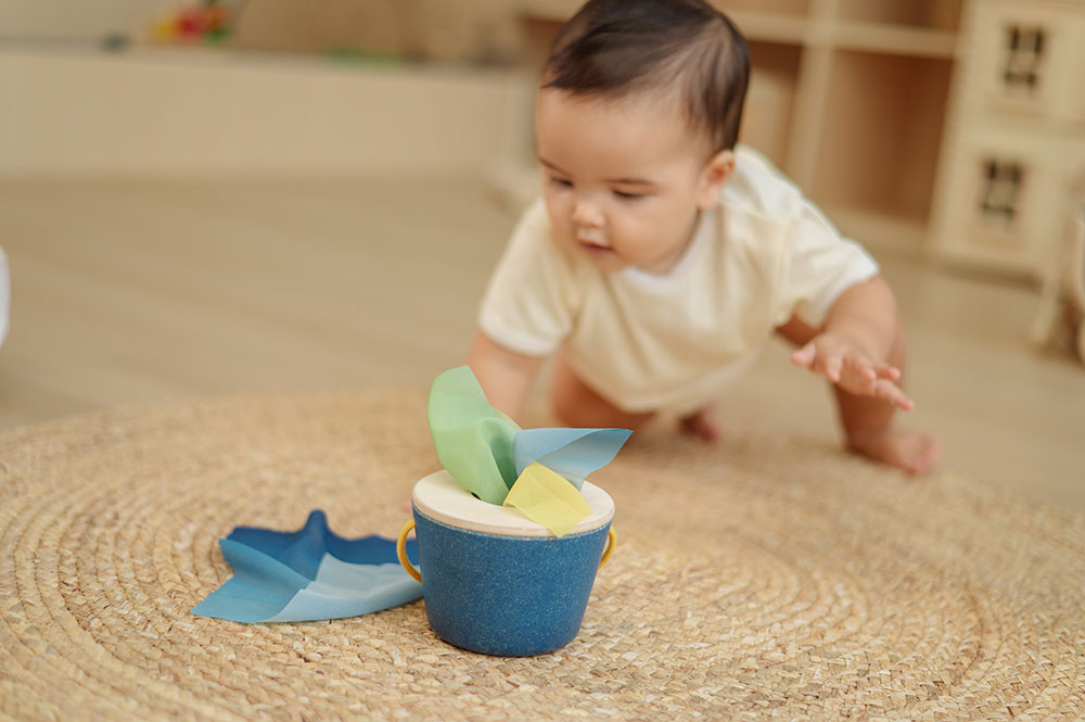 Αυτό το απτικό και εύχρηστο παιχνίδι για μεταφορά κρατά τα παιδιά απασχολημένα μέσα από την κίνηση του τραβήγματος, της εισαγωγής και της εξερεύνησης με 4 υφασμάτινα “χαρτομάντιλα” που περνούν από τις τρύπες στο πάνω και κάτω μέρος. Ενισχύει τις λεπτές κινητικές δεξιότητες, τον συντονισμό χεριού-ματιού και την αισθητηριακή ανάπτυξη. Ενθαρρύνει την επίλυση προβλημάτων, την εξάσκηση διαφορετικών τρόπων πιασίματος και εισάγει την έννοια της αιτίας και του αποτελέσματος.