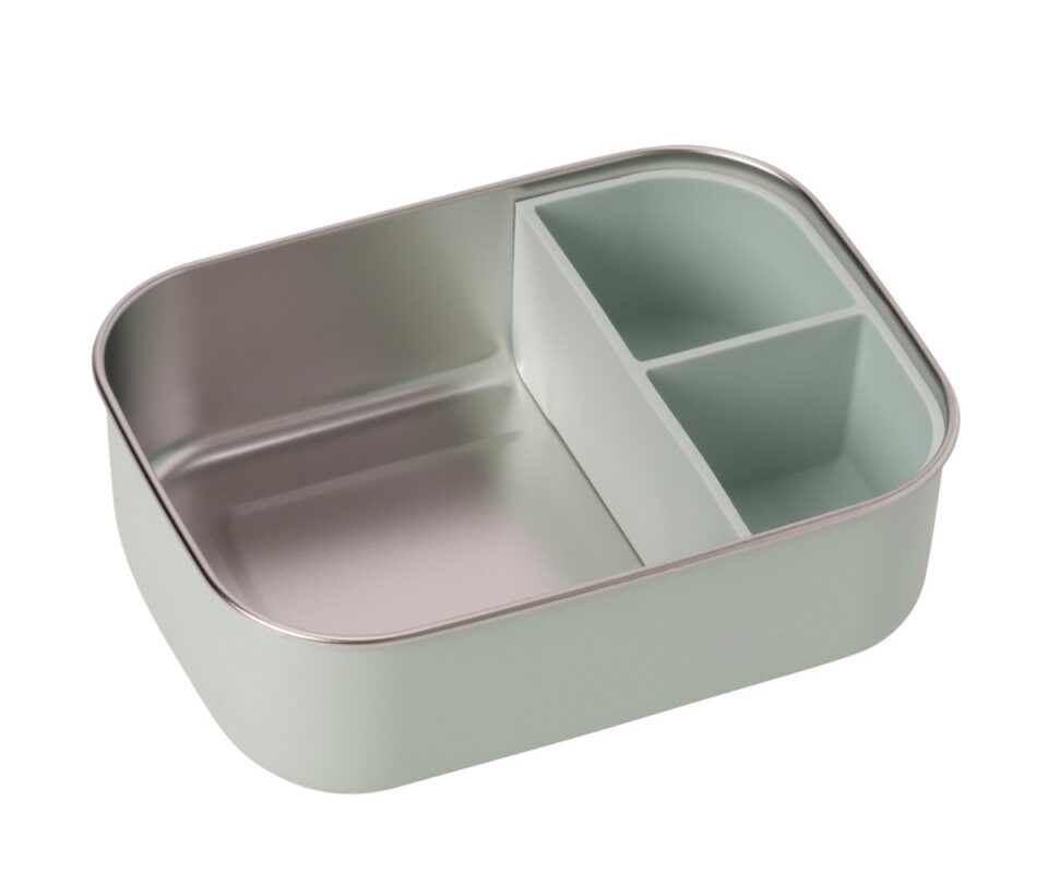 Το ελαφρύ κουτί από ανοξείδωτο ατσάλι διαθέτει αφαιρούμενο διαχωριστικό σιλικόνης, κατάλληλο για τρόφιμα, για να μοιράζεστε το γεύμα σας σε πρακτικά διαμερίσματα. Με διαστάσεις 19,7 x 14,2 x 6cm, είναι το τέλειο μέγεθος για τα μικρά χεράκια.