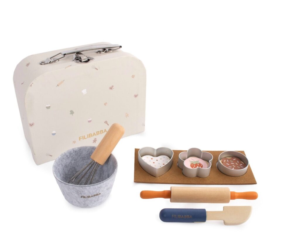 Εμπνεύστε τη δημιουργικότητα του μικρού σας με το γοητευτικό σετ παιχνιδιού Little Baker από τη FILIBABBA. Ιδανικό για μικρούς ζαχαροπλάστες, το σετ αυτό ζωντανεύει έναν κόσμο δημιουργικού παιχνιδιού ρόλων – από το ψήσιμο μπισκότων για τα αρκουδάκια μέχρι την παρασκευή τούρτας για απογευματινά τσάγια.