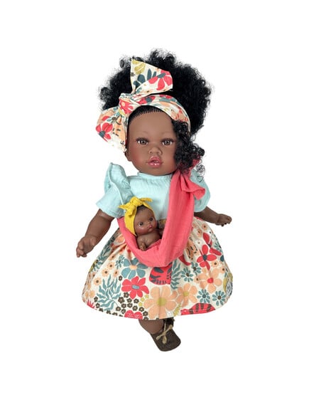 Αρχική / Shop / Προτάσεις για ΔΩΡΑ / Πάνω από 50 ευρώ / Nines D’Onil: Addis με φλοράλ φόρεμα και μωρό σε μάρσιπο – 45 εκ.