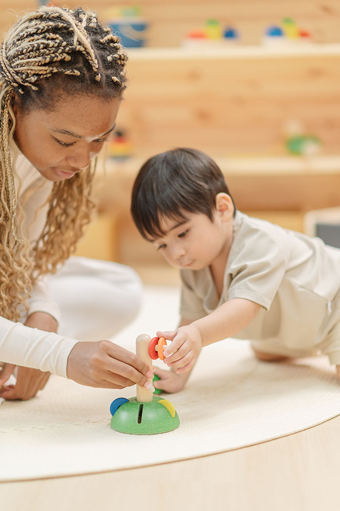 Αυτό το μοναδικό παιχνίδι στοίβαξης προσκαλεί τα παιδιά να αλληλεπιδράσουν με τα παραδοσιακά παιχνίδια στοίβαξης με έναν νέο τρόπο. Διαθέτοντας μια οριζόντια ράβδο στοίβαξης, βοηθά στη βελτίωση των κινήσεων των χεριών, της περιστροφής του καρπού και του συντονισμού. Η βάση περιλαμβάνει μια υποδοχή για κέρματα για πρόσθετη εμπλοκή, ενισχύοντας τις λεπτές κινητικές δεξιότητες και τον συντονισμό χεριού-ματιού. Τα παιδιά αφαιρούν τους δακτυλίους και τους περνούν στην οριζόντια θέση, βελτιώνοντας τον έλεγχο των δακτύλων και τη χρήση των χεριών και των δύο πλευρών. Μόλις ολοκληρωθεί, μπορούν να σύρουν τους δακτυλίους και να τους ρίξουν στην υποδοχή αποθήκευσης της βάσης, ενισχύοντας την επίλυση προβλημάτων και τη γνωστική ανάπτυξη.
