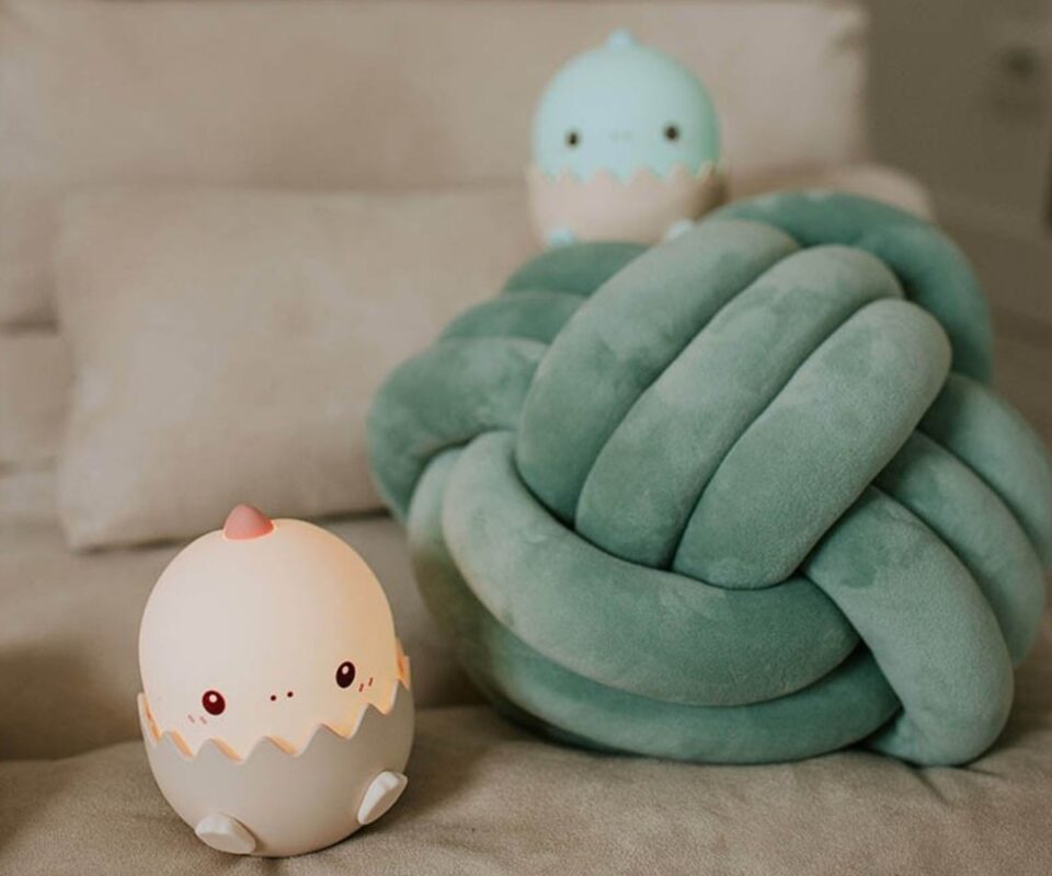 Ένας μικρός δεινόσαυρος που εκκολάπτεται από το αυγό του, ως πρώτο φωτάκι για το παιδικό δωμάτιο, δημιουργεί μια χαριτωμένη και παιχνιδιάρικη ατμόσφαιρα. Στο δωμάτιο θα απλώνεται ένα απαλό άρωμα ελαίου (όπως παιδική λοσιόν) σε συνδυασμό με το φωτάκι, που μπορεί να έχει οποιοδήποτε χρώμα ταιριάζει στη διακόσμηση του δωματίου.