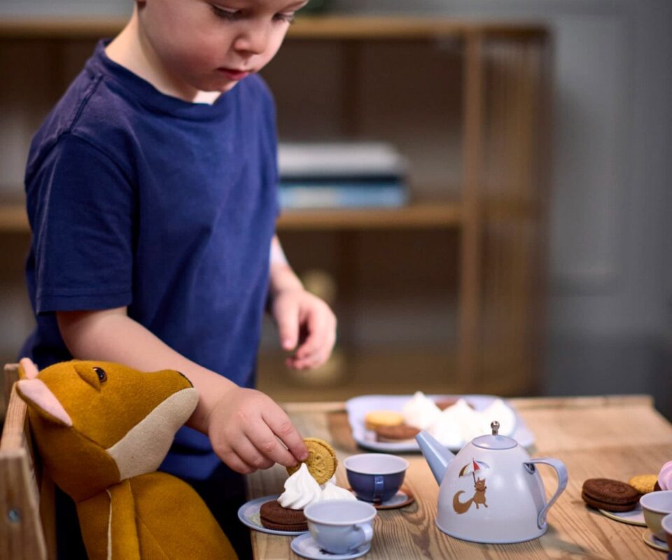 Κάθε παιδί χαίρεται τη διαχρονική μαγεία του παιχνιδιού με ένα σετ τσαγιού! Με αυτό το υπέροχο σετ τσαγιού της FILIBABBA, τα μικρά μπορούν να καλέσουν τα αγαπημένα τους αρκουδάκια, κούκλες ή ακόμα και τη μαμά και τον μπαμπά για να συμμετάσχουν στη διασκέδαση. Σχεδιασμένο για να εμπνέει δημιουργικό παιχνίδι ρόλων, δίνει ζωή στο κλασικό παιχνίδι ενώ καλλιεργεί τη φαντασία, τις κοινωνικές δεξιότητες και τη διάθεση για αφήγηση.