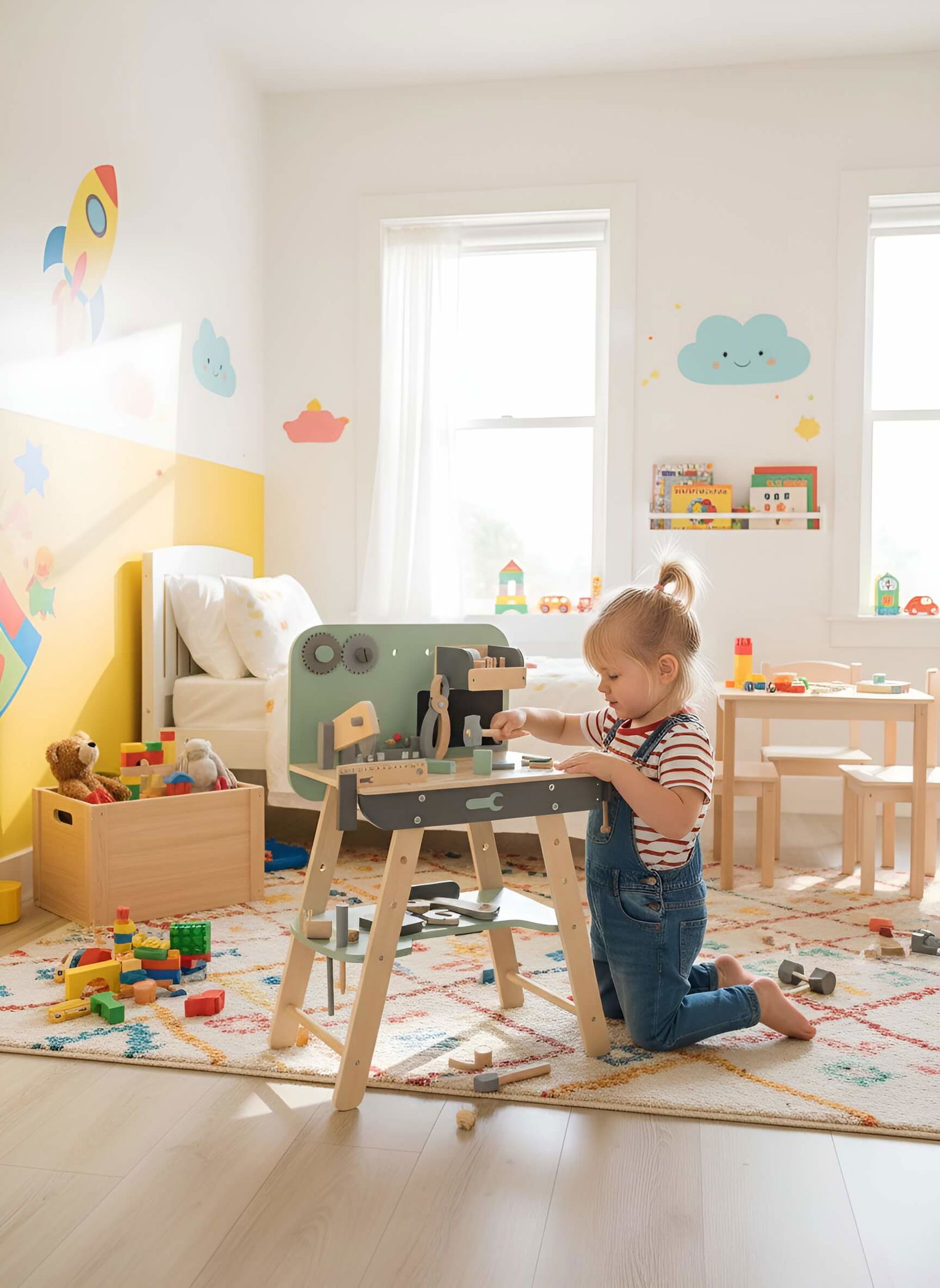 Ο παιδικός πάγκος εργασίας Joyland Poko προσφέρει έναν πλήρως εξοπλισμένο χώρο δημιουργίας για κάθε μικρό τεχνίτη. Με κατσαβίδι, γρανάζια, σφυρί και γωνιόμετρο προσκαλεί το παιδί σε ατελείωτες ώρες παιχνιδιού, καλλιεργώντας τη λογική σκέψη, τη λεπτή κινητικότητα και τη δημιουργικότητα.Η ανθεκτική κατασκευή και ο λειτουργικός σχεδιασμός με πρακτικούς αποθηκευτικούς χώρους προσφέρουν άνεση και ευκολία σε κάθε στιγμή του παιχνιδιού.