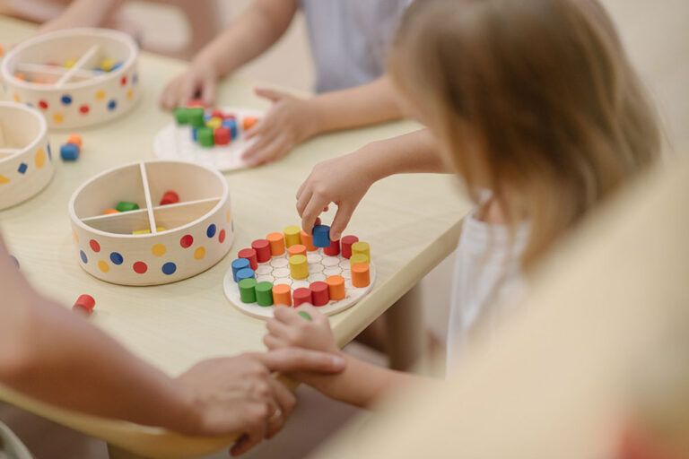 Ενισχύει τη δημιουργικότητα, τη συστηματική σκέψη και τις λεπτές κινητικές δεξιότητες καθώς τα παιδιά τοποθετούν χρωματιστά πασαλάκια δημιουργώντας τρισδιάστατα σχέδια και μοτίβα. Η δραστηριότητα καλλιεργεί τον συντονισμό χεριού-ματιού, την ευελιξία των δακτύλων και τις πρώτες μαθηματικές δεξιότητες μέσω της ταξινόμησης χρωμάτων, συμμετρίας και ακολουθιών. Οι κυκλικοί οδηγοί στον πίνακα βοηθούν στην ακριβή τοποθέτηση των πασαλακίων, δίνοντας στα παιδιά τη δυνατότητα να σχεδιάζουν ελεύθερα, να ακολουθούν πρότυπα, να ταξινομούν ανά χρώμα, να μετρούν και να εξασκούν βασικές μαθηματικές έννοιες.