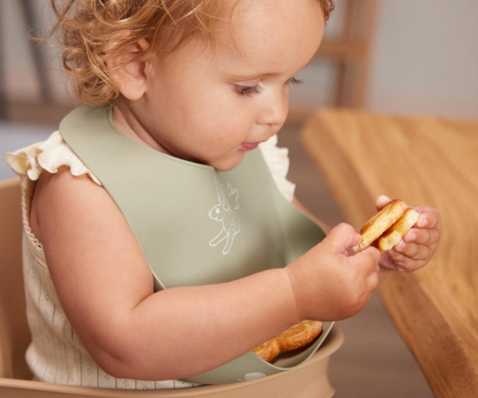 Με μια ευρύχωρη πτυχή στο κάτω μέρος, η σαλιάρα μας συλλέγει τρόφιμα και υγρά.