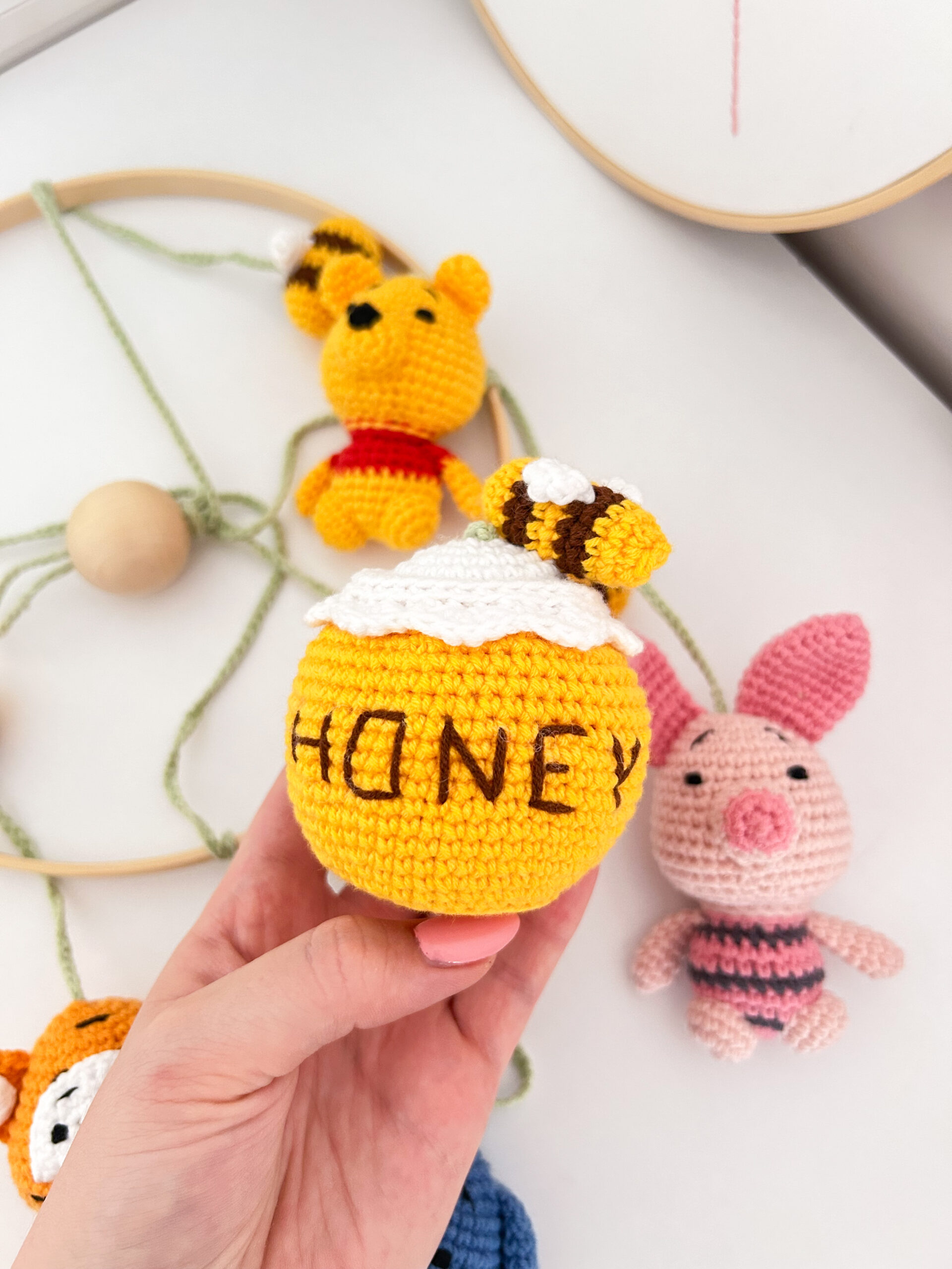 Αρχική / Shop / Βρεφικά Είδη / Χειροποίητο διακοσμητικό πλεκτό μόμπιλε με θέμα τον Γουίνι (Winnie The Pooh) για το βρεφικό δωμάτιο