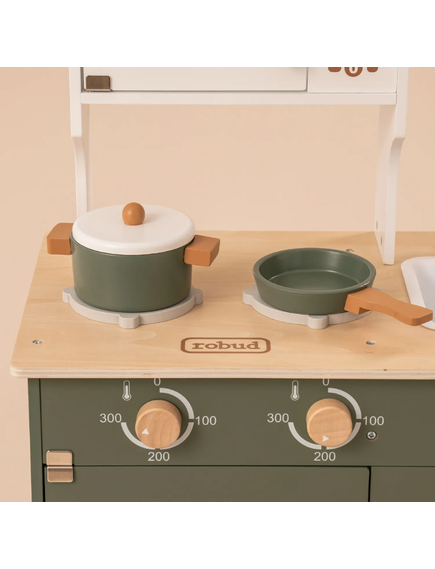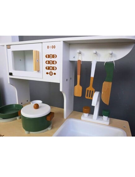 Αρχική / Shop / Παιχνίδια / Παιχνίδια Μίμησης & Ρόλων / Ξύλινα Κουζινικά / Ξύλινη παιδική κουζίνα με κατσαρολικά- Vintage green